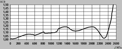 по выходу в диапазоне 0-2500 МГц не более 2,0.